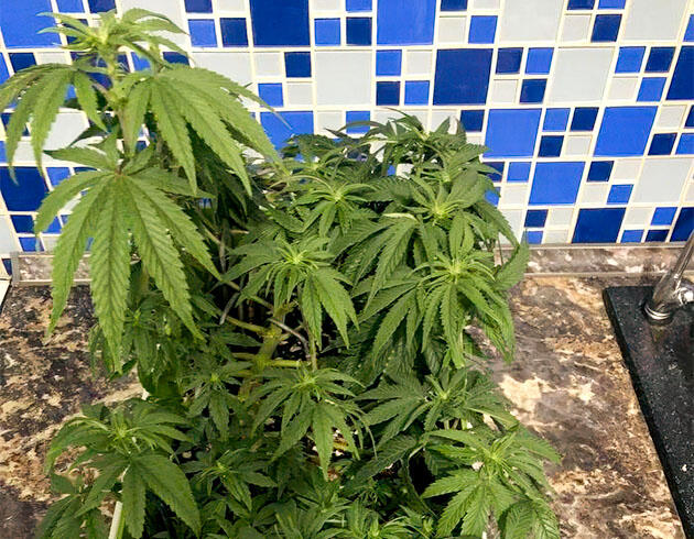 Куст марихуаны на поздней стадии роста